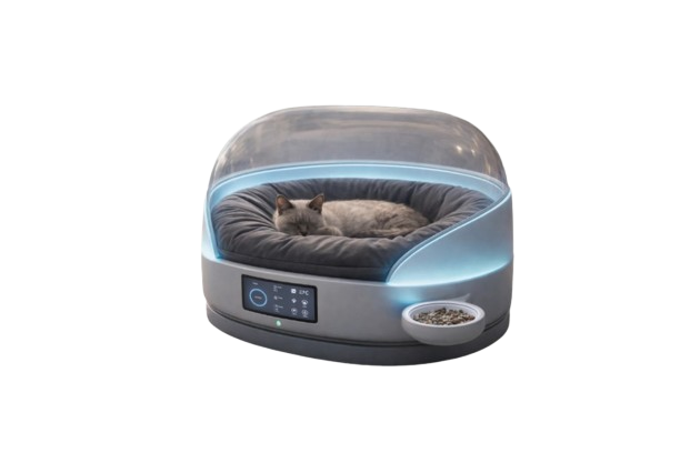 Vitalsphere è molto più di un accessorio: è l’ultima frontiera della cura animale. Questa capsula di riposo, dal design futuristico ed elegante, è stata progettata per garantire al tuo cane o gatto non solo il massimo del comfort, ma anche un monitoraggio sanitario ininterrotto e clinicamente rilevante.